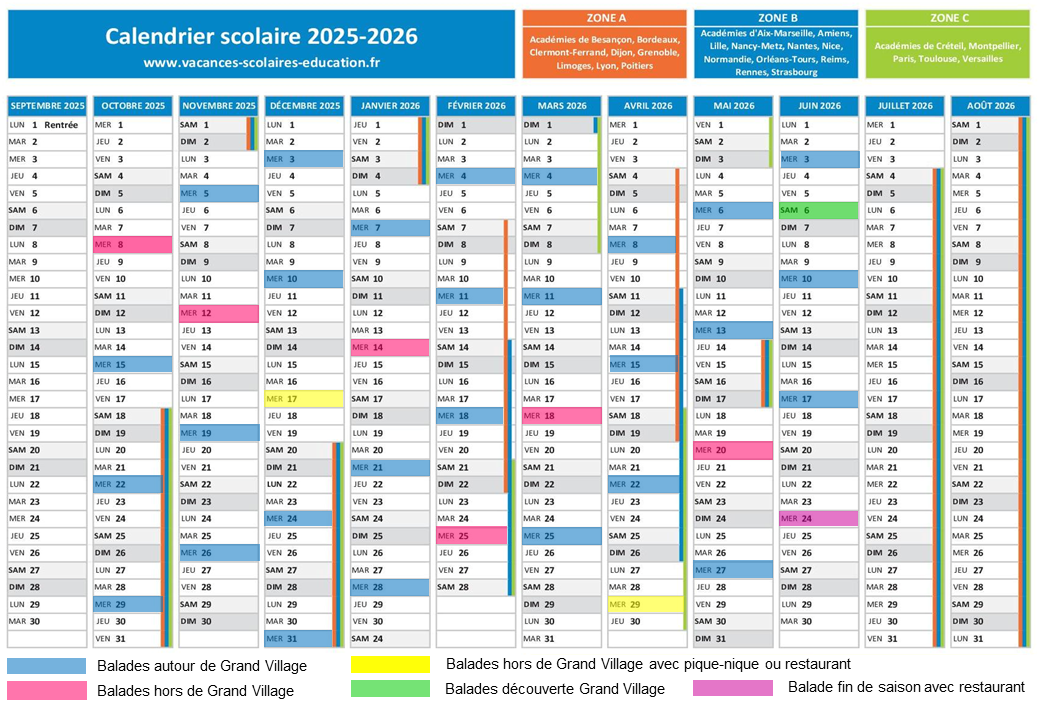 - 1 sortie par mois en dehors de la commune de Grand Village,